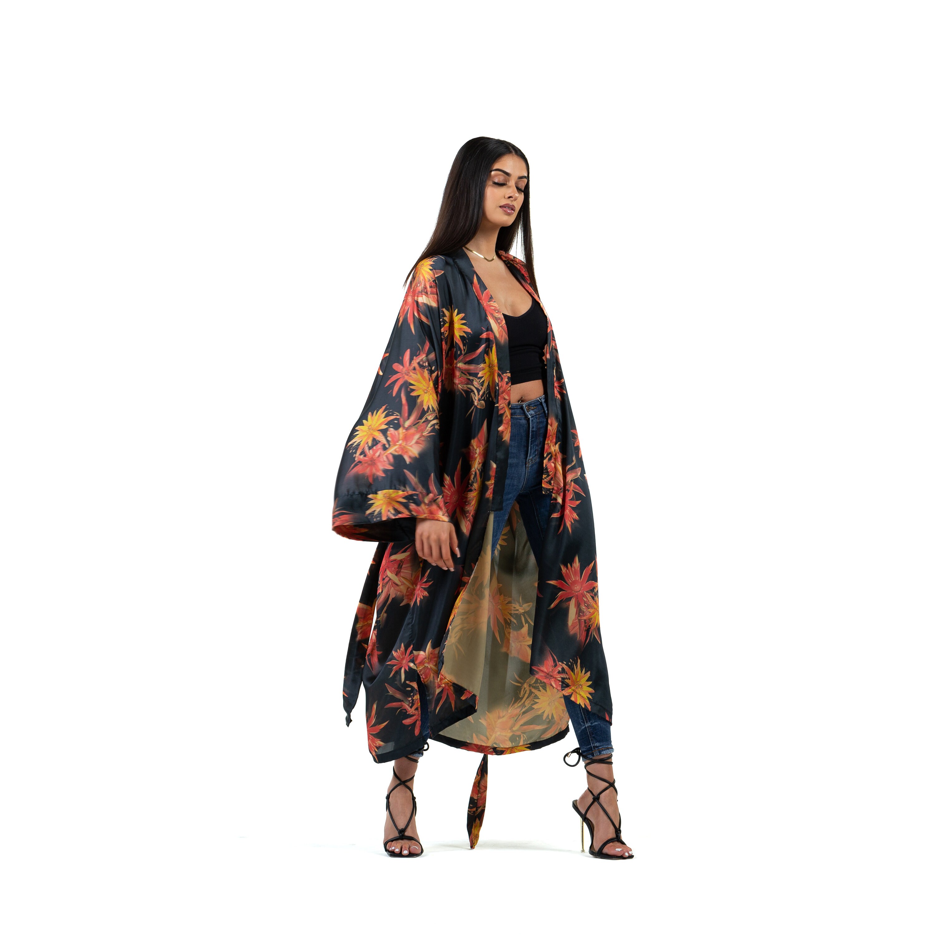 Buy Sade Satin Floral Sunburst Print Kimono Style Robe Black Online In India Etsy